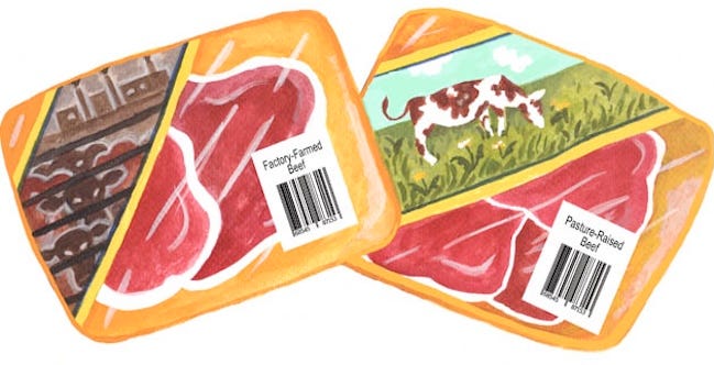 Clearly, the nutritional profiles of factory-farmed, grain-fed livestock and pasture-raised animals are so different, they are not even the same food. They might look the same on the supermarket shelf, but they’re not.