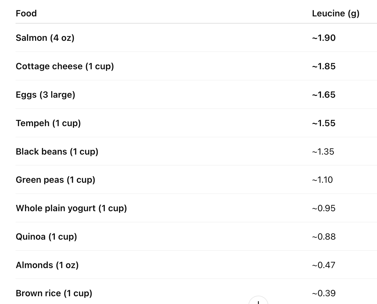 Now let’s look at the leucine content of some other common protein foods: